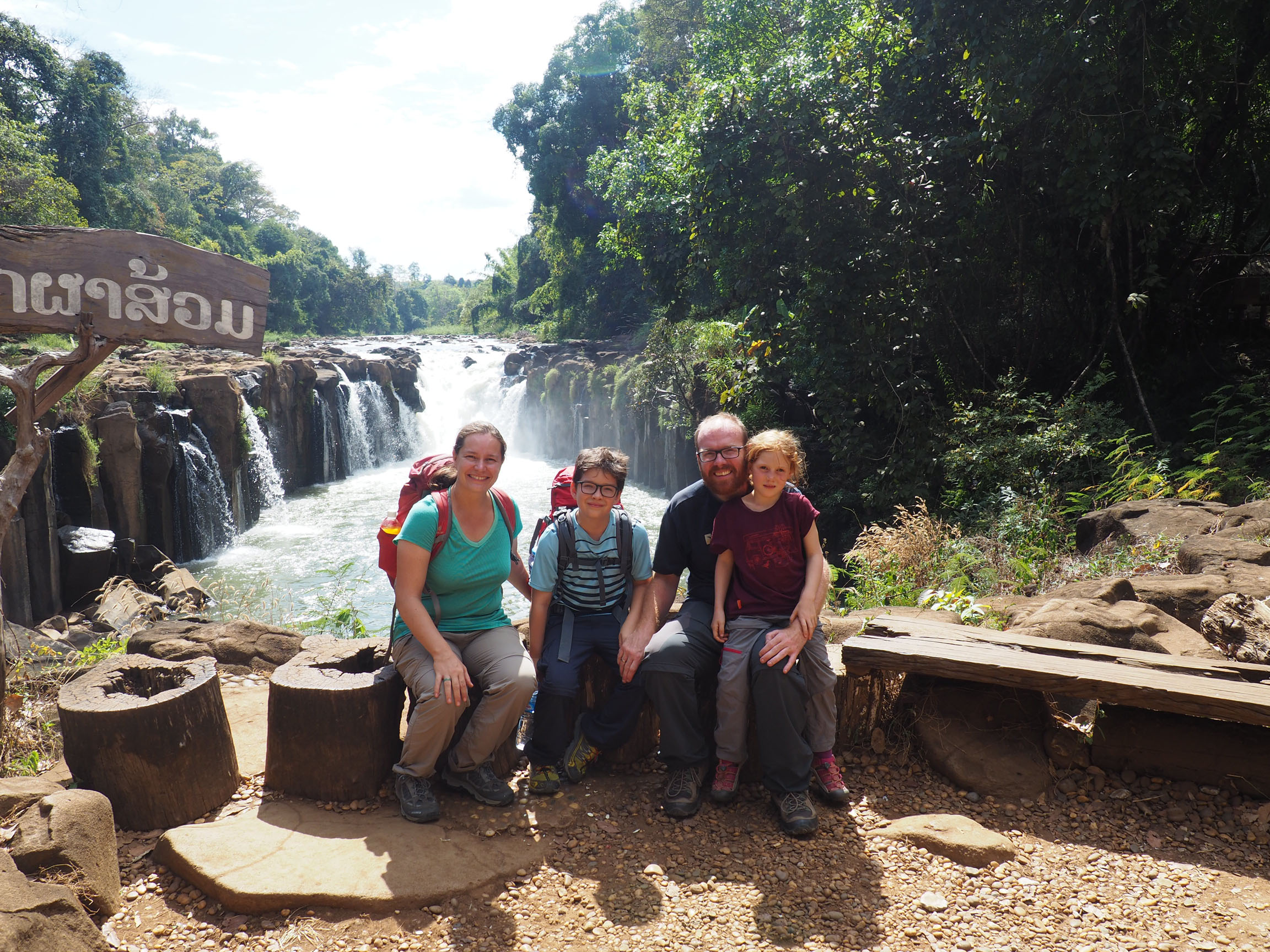 Troisième étape de Paksong à Tad Champi : 14Km. Une toute petite route afin de trouver rapidement notre guesthouse et pouvoir explorer l’ensemble des cascades du KM35. Excellent ! On en prend plein les yeux entre Tad Yuang, Tad Fane (la cascade qui disparait dans la jungle), Tad Champi, Tad itou(ou E-Tou)… Un vrai moment de plaisir à chercher les petits chemins en scooter pour trouver les cascades, parcourir les sentiers prêts de la rivière et avoir un grand sentiments d’avoir la chance de voir tout ceci, en famille. Encore un autre moment DecloSacàDos en TdM qui restera longtemps dans les cœurs ! Lors de cette étape, nous avons fait la connaissance de Marion et Romain qui nous ont beaucoup aidé pour le pied de Jeanne ! On vous laisse admirer quelques clichés.